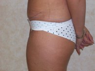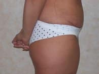 Patient 5: A 28-year-old female has had two c-sections and would like a tighter abdomen. She is 5’1″ and weighs 150 lbs. She is shown six weeks following abdominoplasty with liposuction of her flanks.